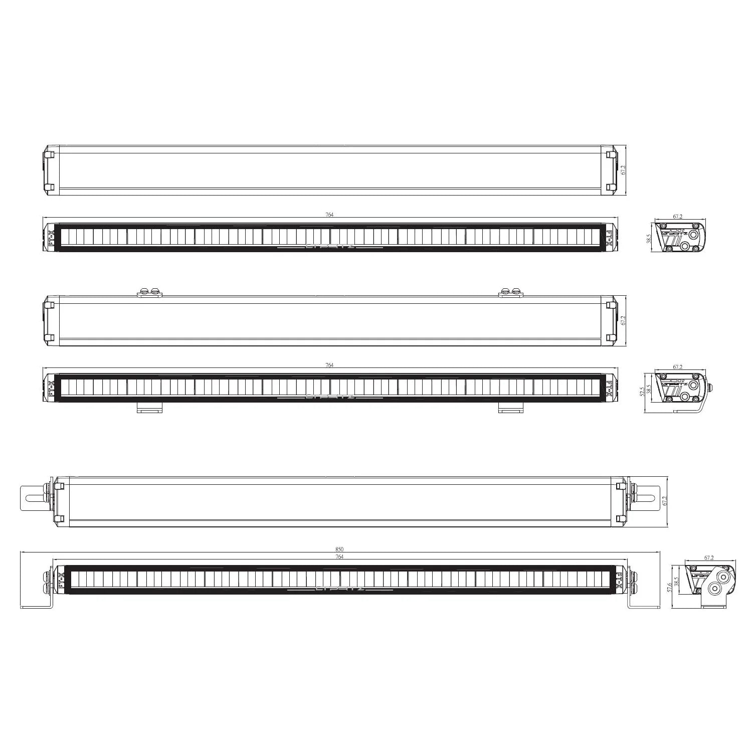 Abmessungen: 764 x 38,5 x 67,2 mm