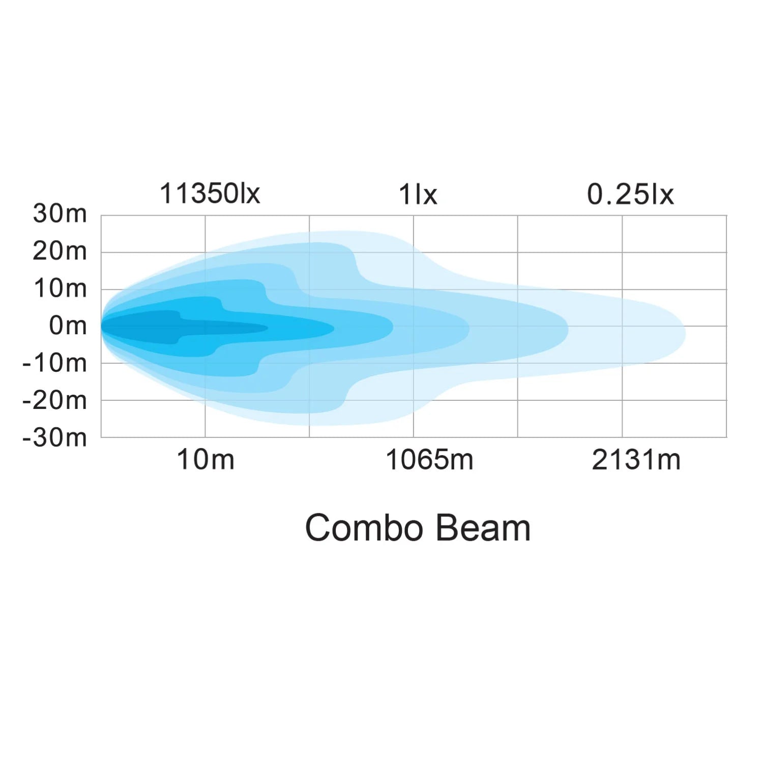 Reichweite: 2.131 m (0,25 Lx), 1.065 m (1 Lx)