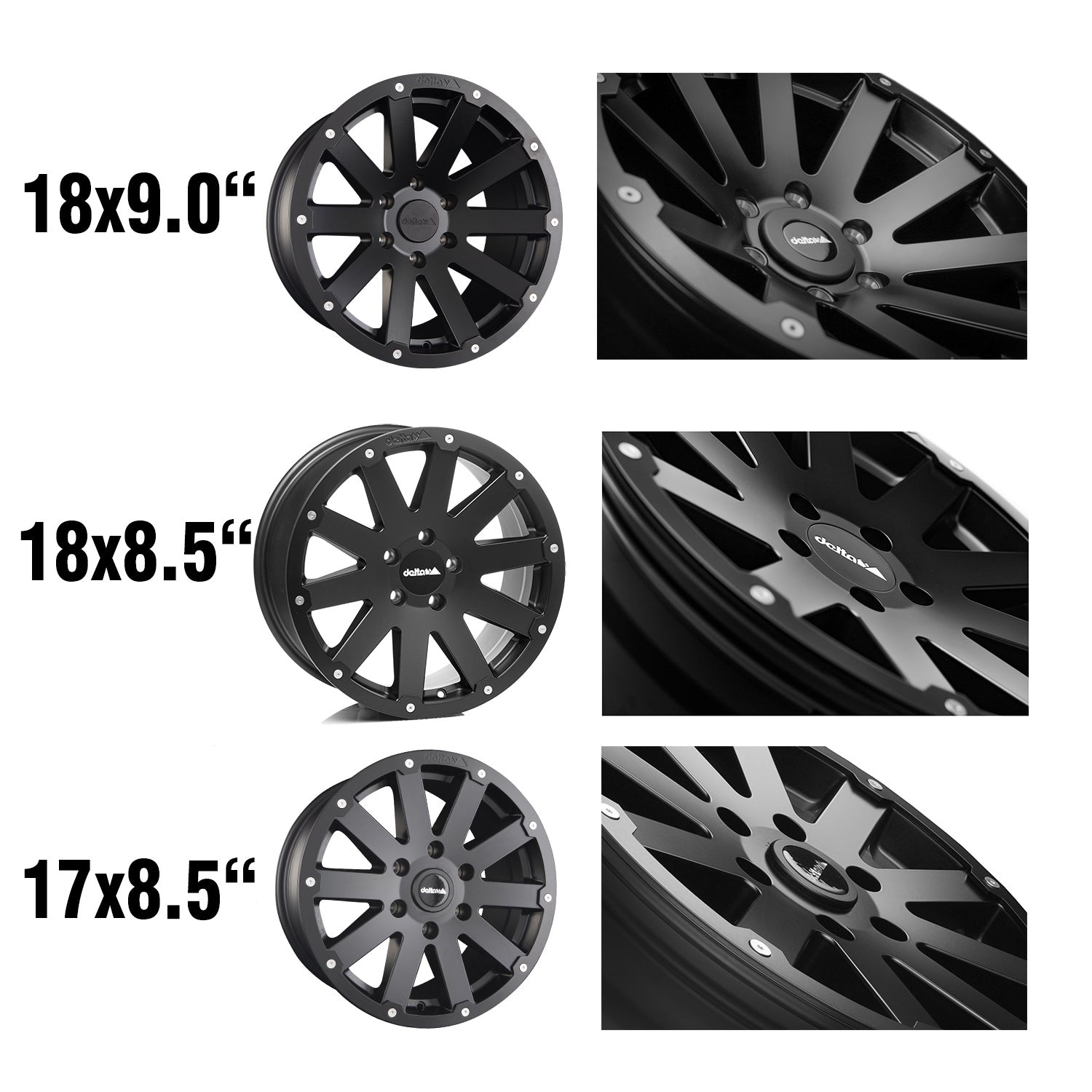 Der Beadlock-Ring ist austauschbar und trägt das delta4x4-Logo. Die Mittenradabdeckung kommt mit dem delta-Logo in weiß.