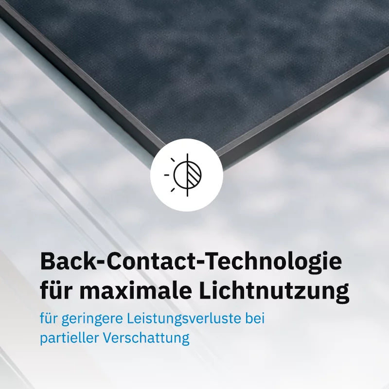 - Back Contact-Technologie – alle Kontakte auf der Rückseite für maximale Lichtausbeute